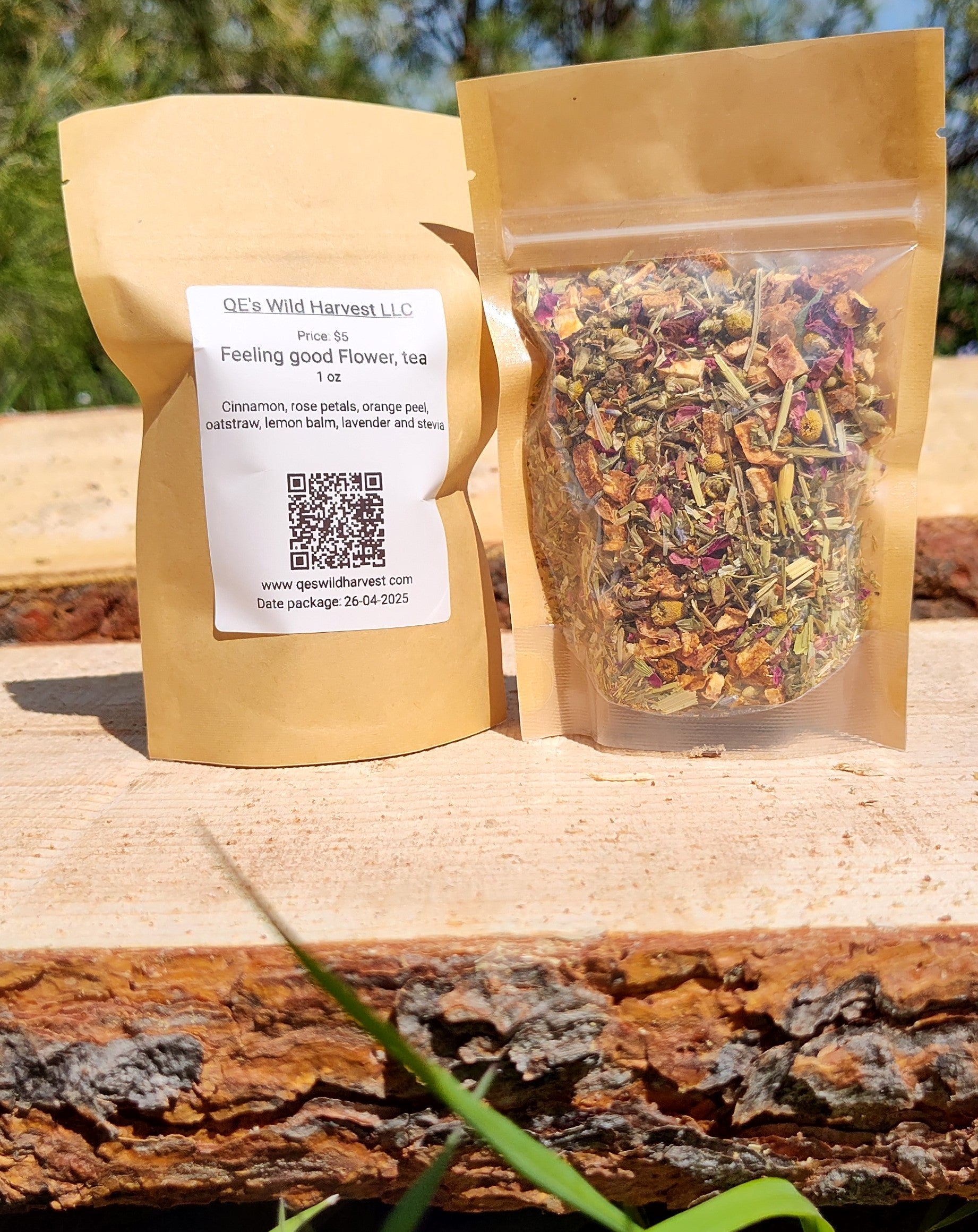 Our Feeling Good Flower Tea is a caffeine-free, calming infusion that brings together a bouquet of healing herbs and flowers, designed to bring balance and relaxation to your day. The delicate blend of chamomile, rose petals, and lavender is complemented by the refreshing notes of lemon balm and orange peel, while oatstraw provides a grounding, nourishing base. A touch of stevia adds a subtle sweetness, making each sip a moment of pure joy.